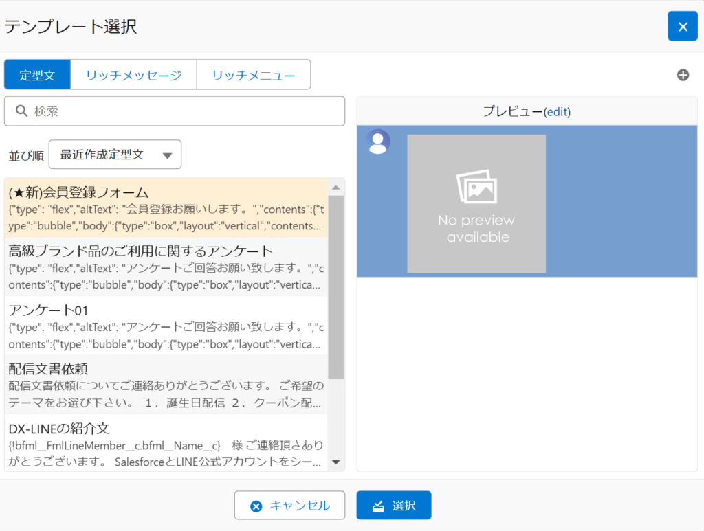 | 13 | テンプレート選択 各種テンプレートを選択して送信可能 リッチメニューを選択して送信場合、対象友だちのリッチメニューを切り替えられる ※画面以下参照する |