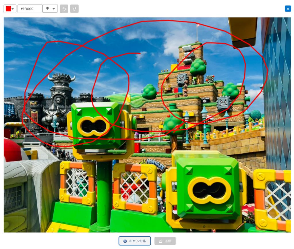 | 8 | 画像に落書き 受信や送信した画像にマウスオーバーすると、画像の落書き画面が表示され、 そのまま編集して再送信することができる。※画面以下参照する |