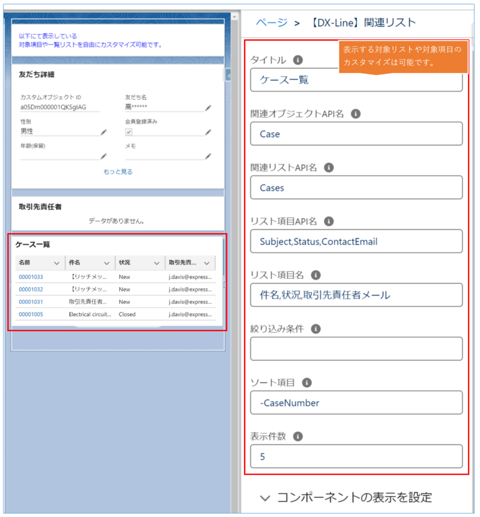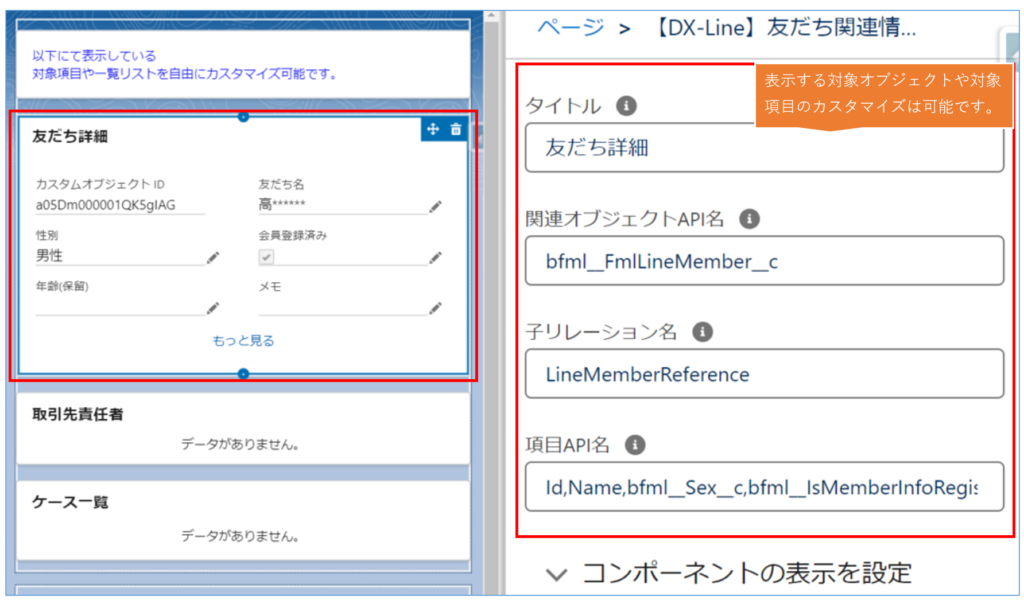 「【DX-Line】友だち関連情報コンポーネント」(「友だち」、「友だち.関連ID」の詳細の表示は可能)