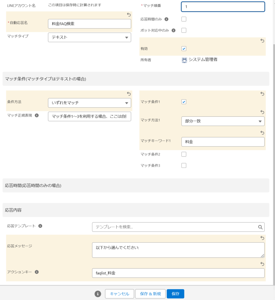 ➁ FAQ用の自動応答登録を2件登録する