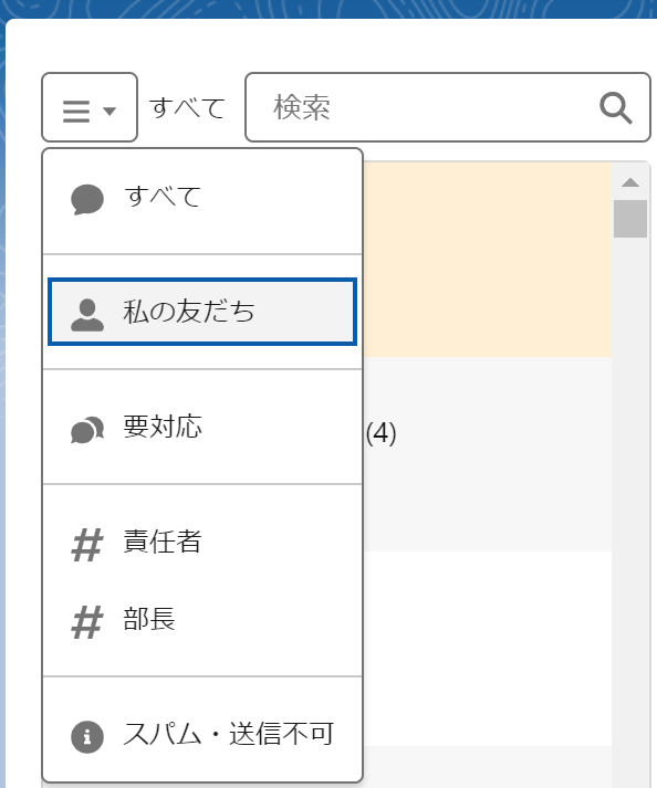 ➁ 設定したタグで、チャット画面の友だち一覧にて絞り込みが可能