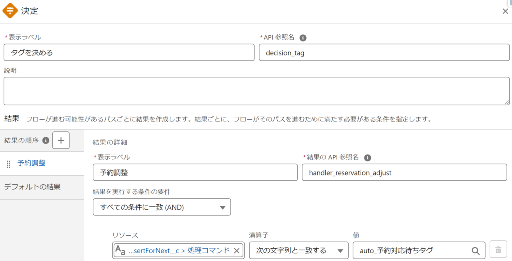 例では、「予約対応待ちタグ」をセット