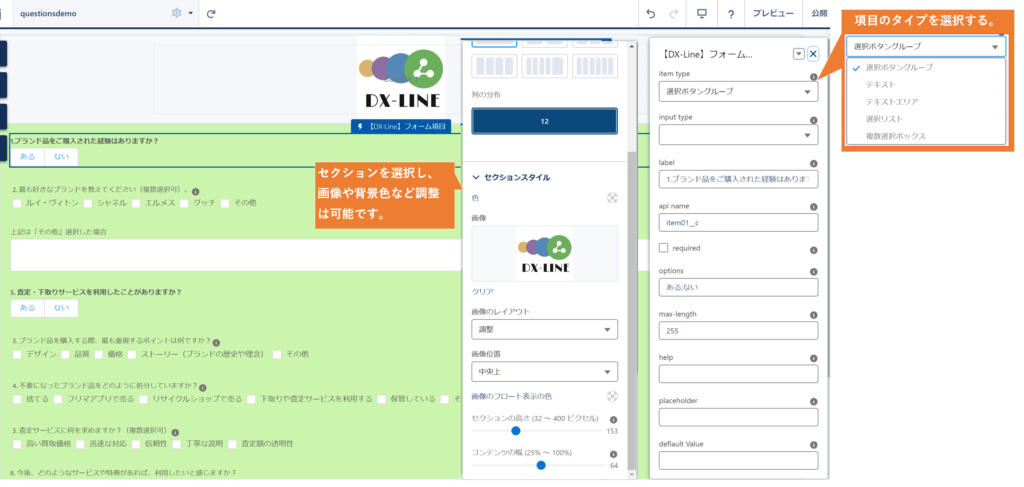 【DX-Line】フォーム項目: 各種入力項目