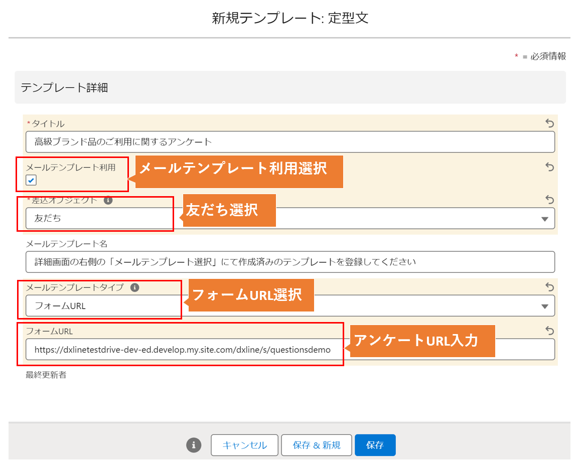 準備3. アンケート送信用テンプレートを作成する