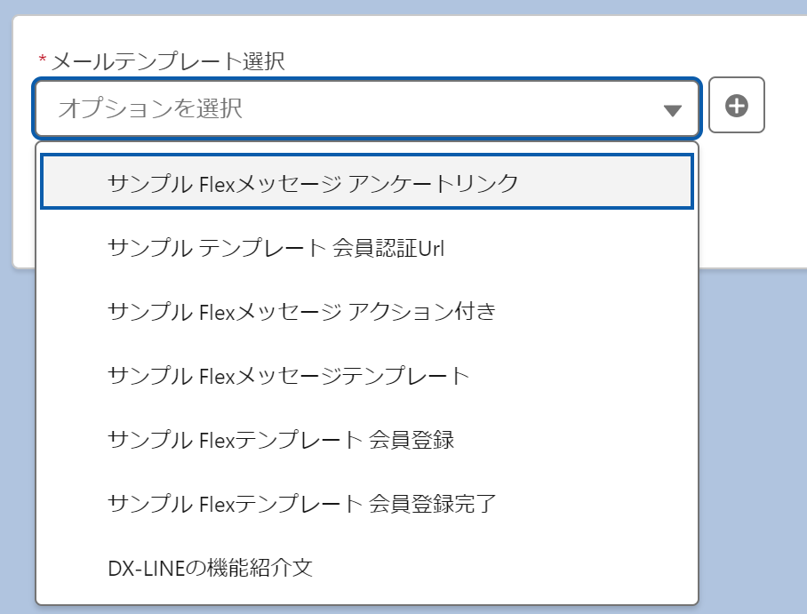 ③メールテンプレートで「サンプル Flexメッセージ アンケートリンク」を選択