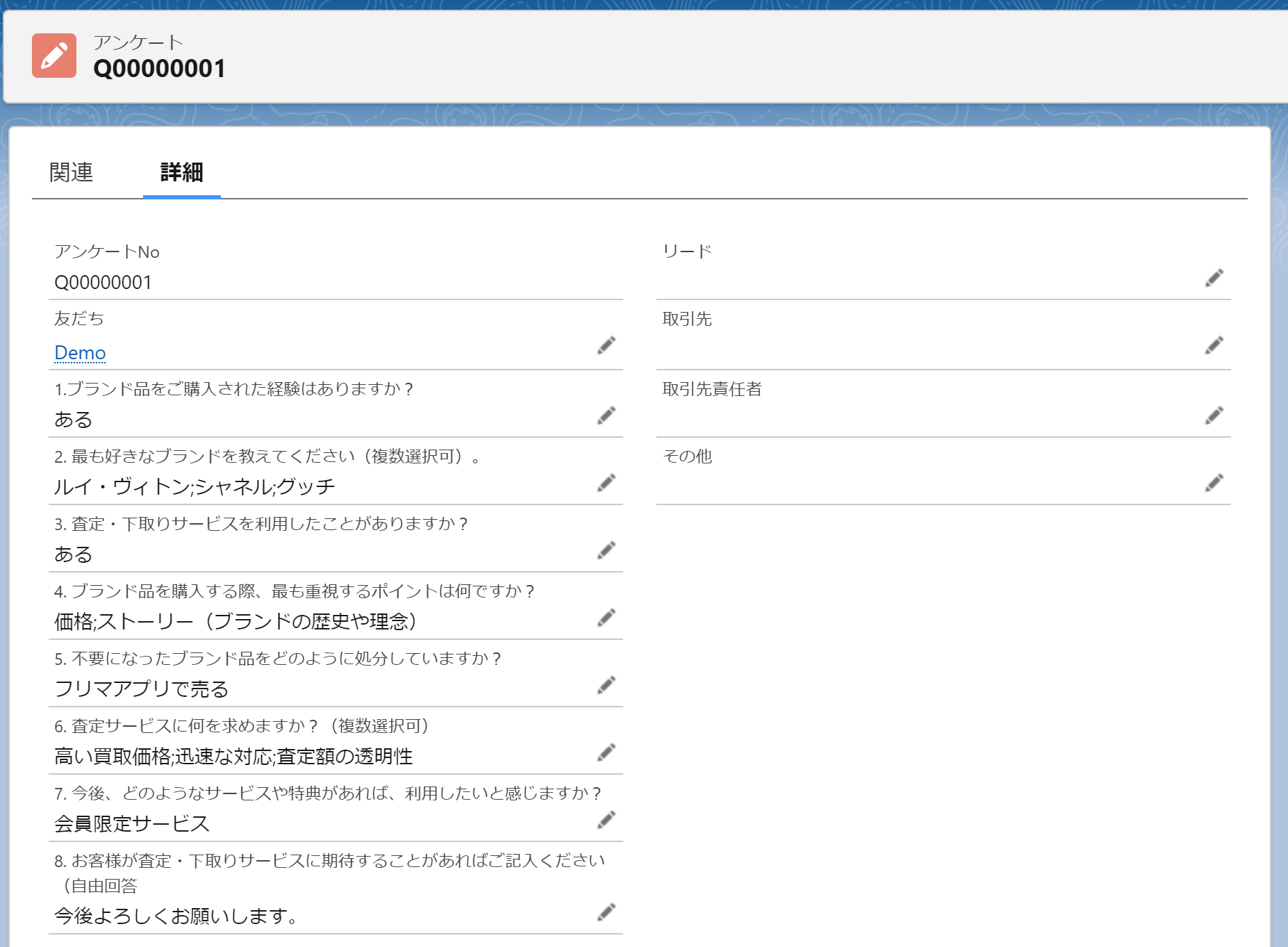 登録情報は「アンケート回答」でレコード新規作成をする