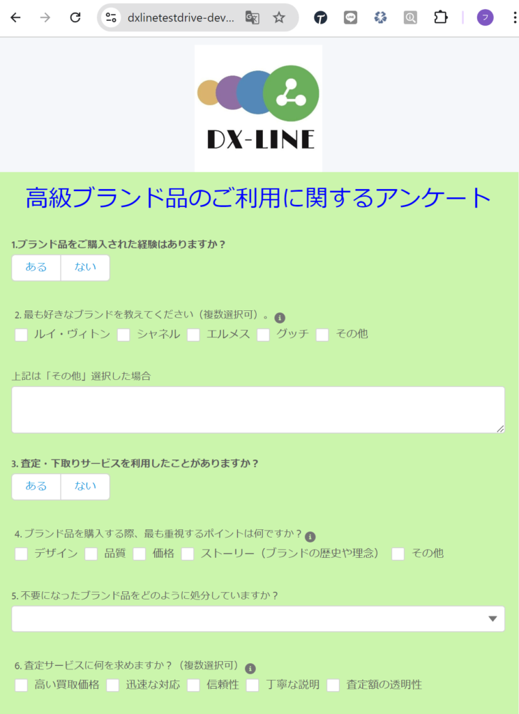 ・DX-LINEのテンプレート機能を利用し、アンケートフォーム送信用テンプレート作成