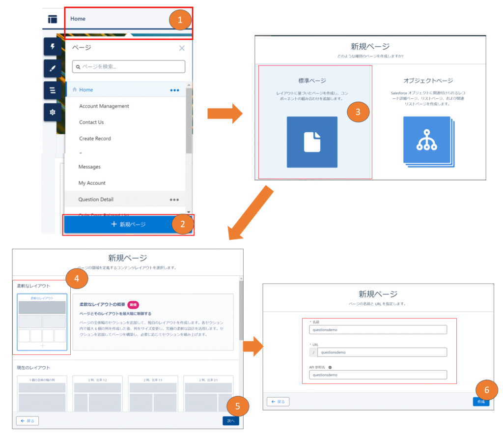 ➁ ページ新規作成をし、必要な項目を配置、設定する