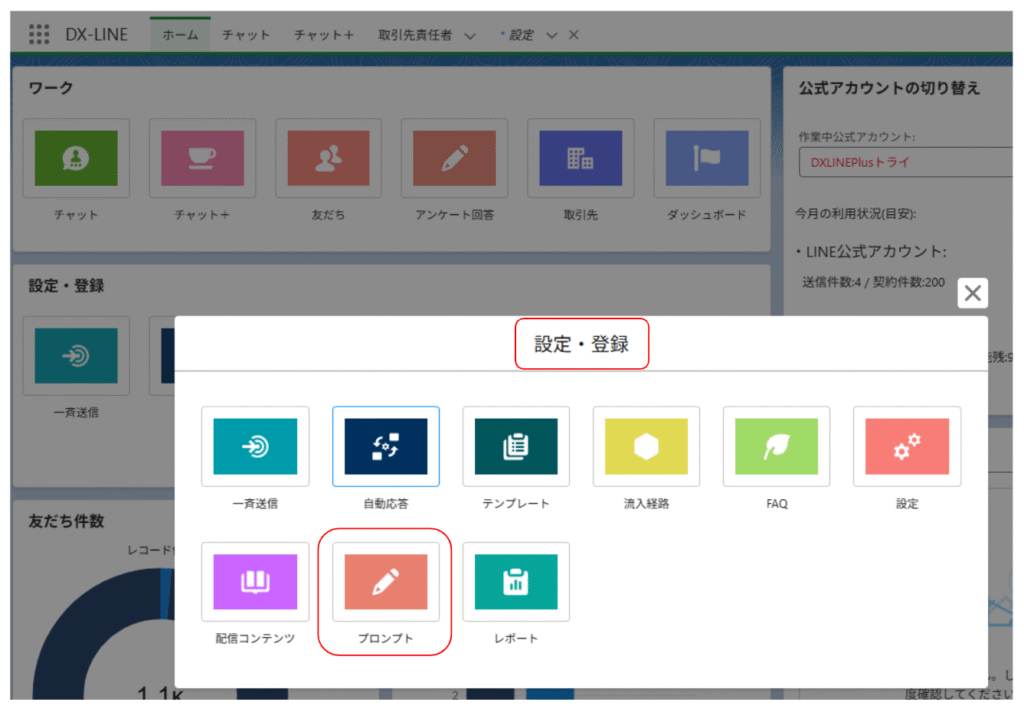 DX-LINE→ホーム→設定・登録→すべて表示→プロンプト
