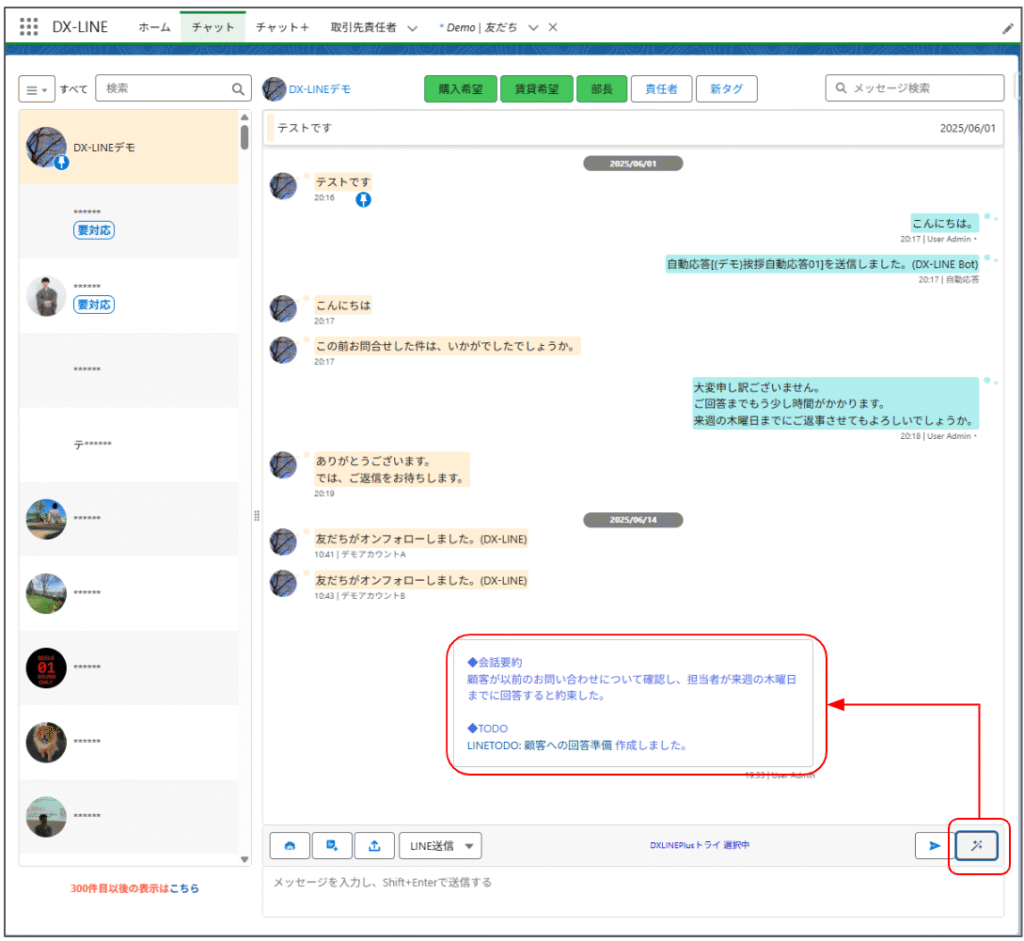 有効化することによって、チャット画面の要約生成ボタンが利用可能になる。