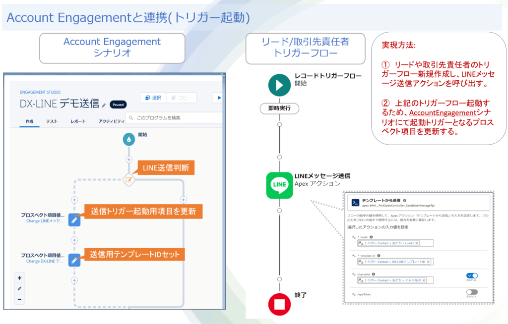 ・Account Engagementと連携することで、シナリオの中でLINEメッセージの配信できるようになる