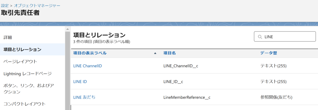 ➀ 取引先責任者にて、以下の3つのカスタム項目を追加する