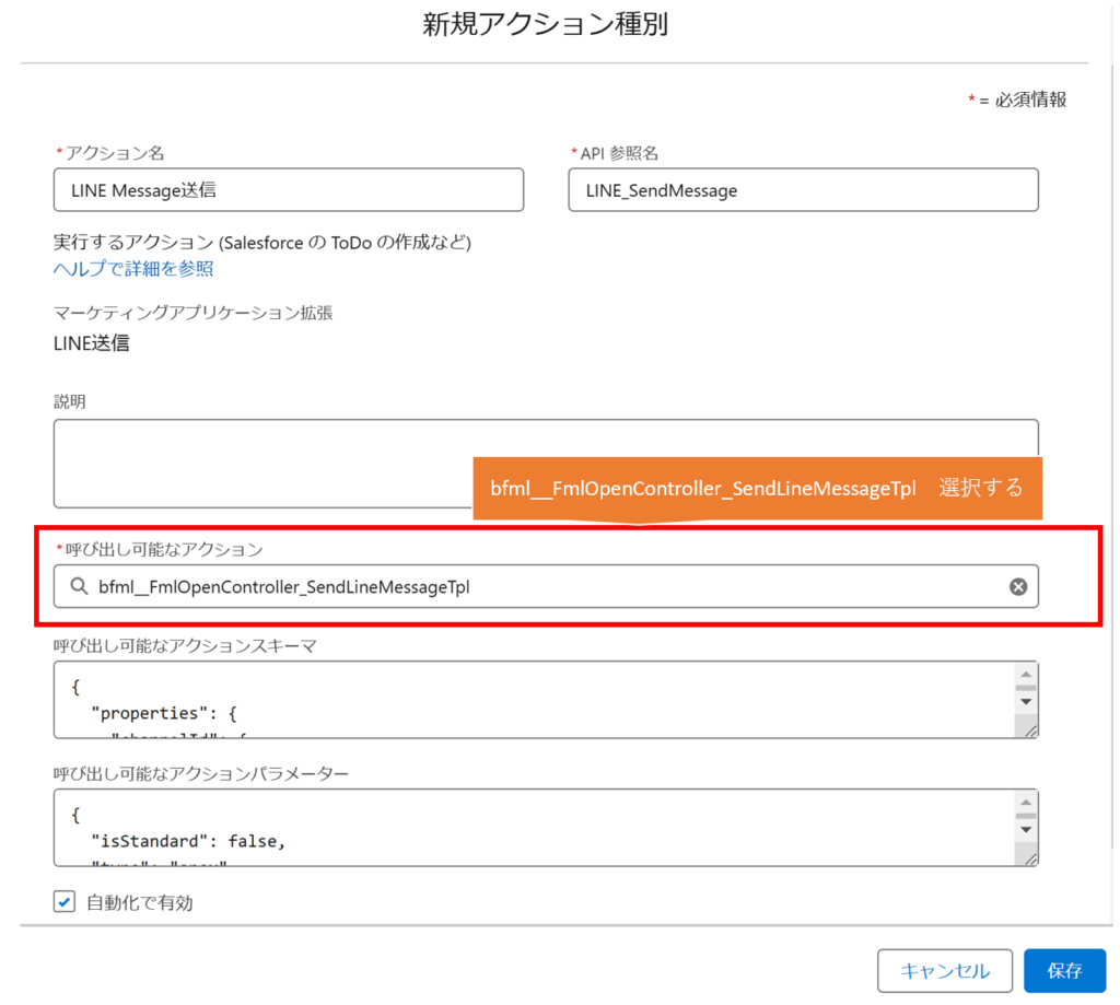 bfml__FmlOpenController_SendLineMessageTpl を選択する