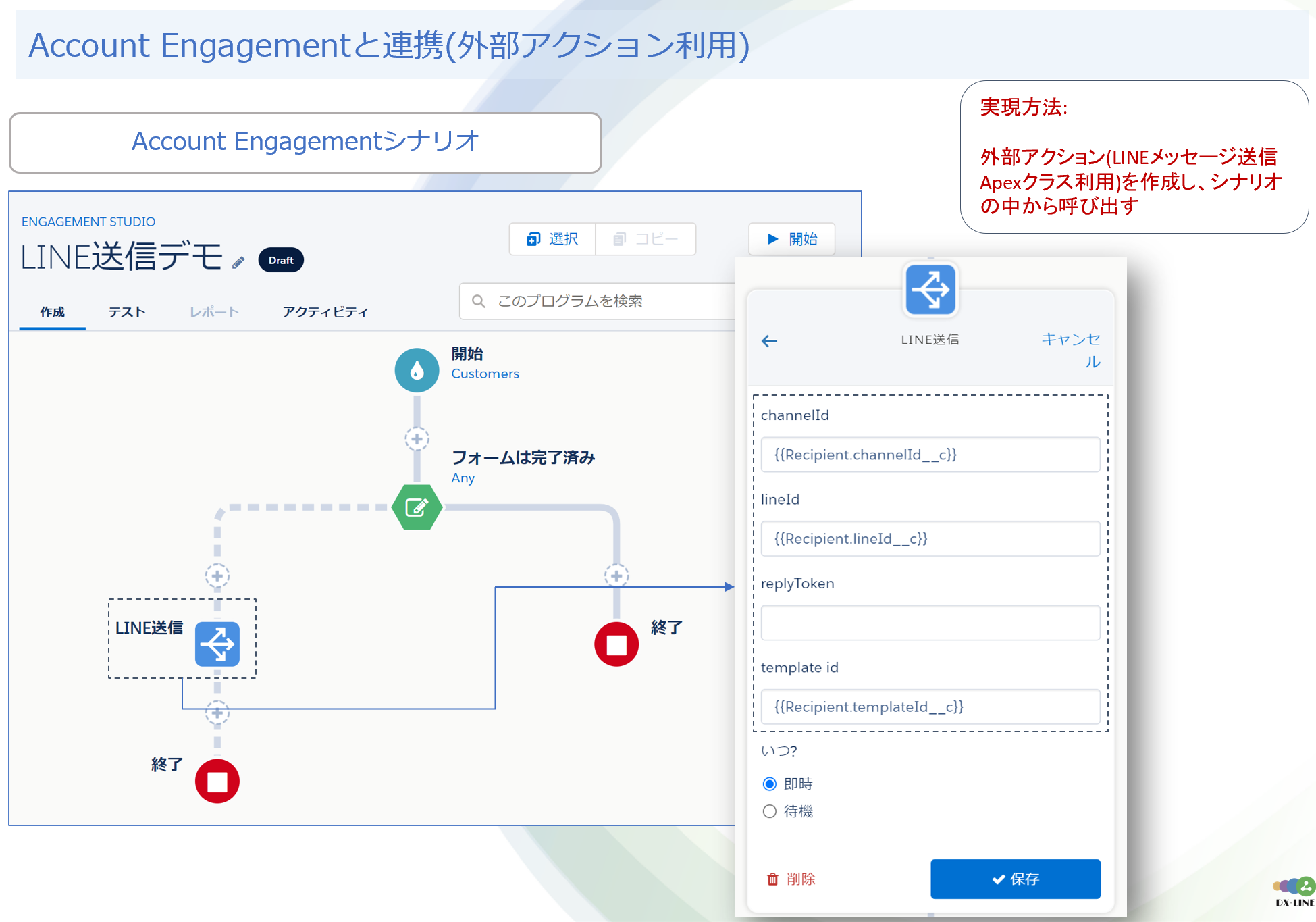 方式➁ DX-LINE Apexアクションを利用し、トリガーを起動する方式