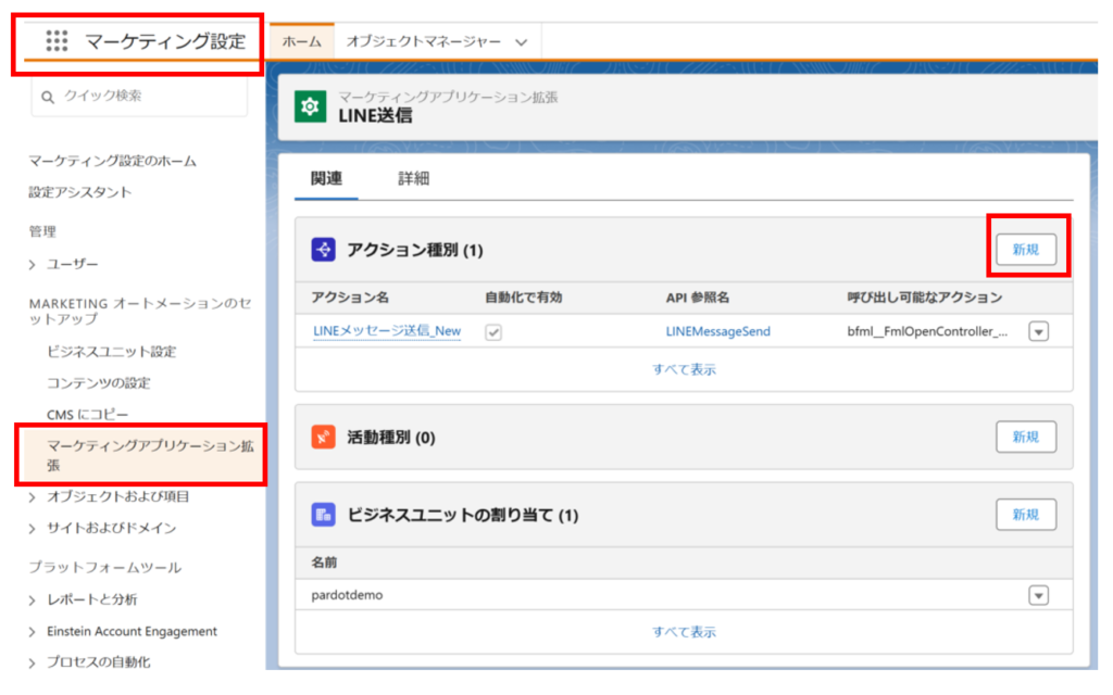 ⇒マーケティングアプリケーション拡張 新規作成