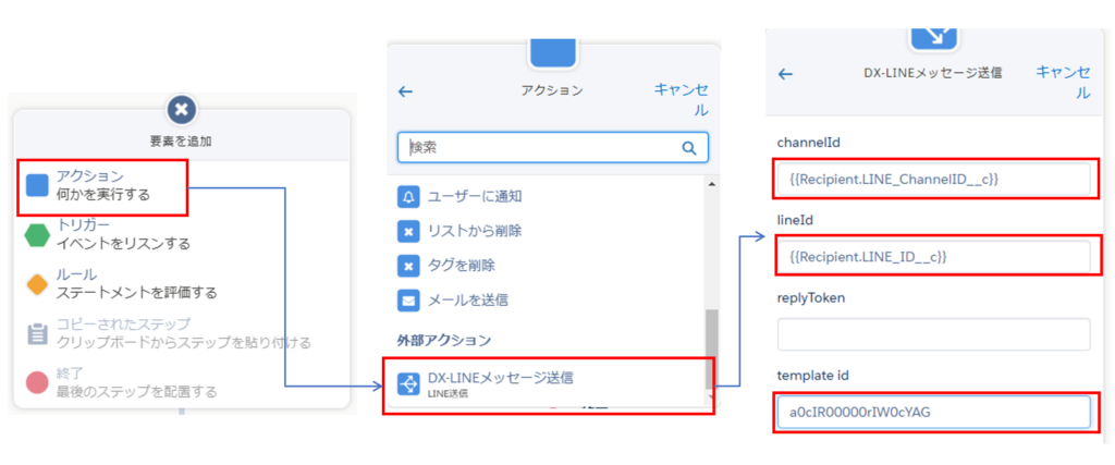 ・lineId: {{Recipient.LINE_ID__c}}