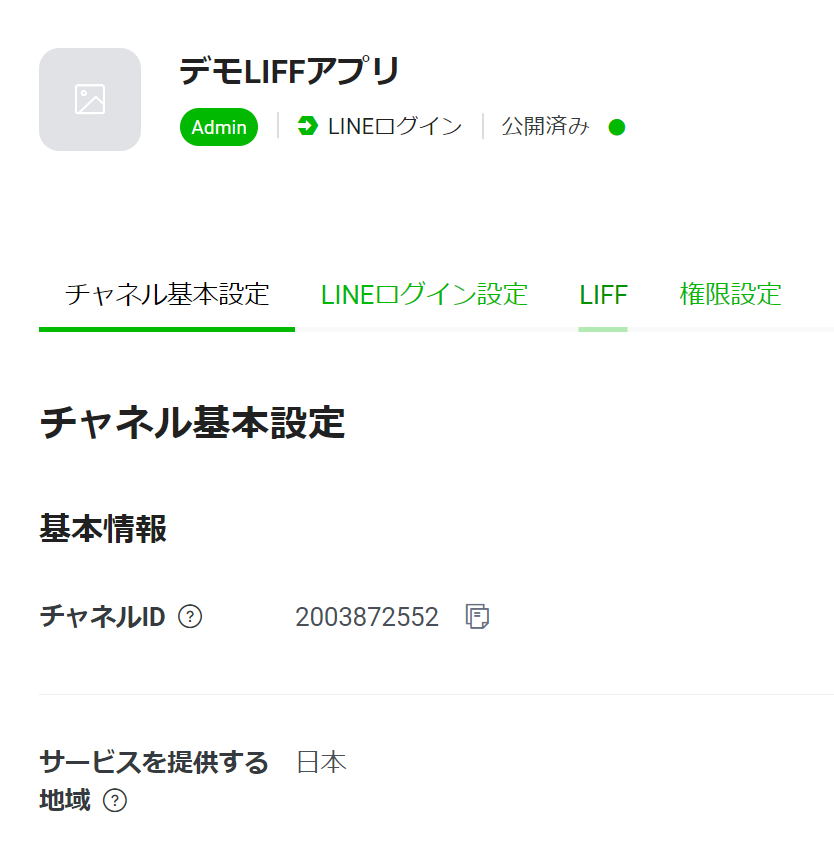 ※LIFF URLは上記①のstep2で取得したURLを入力