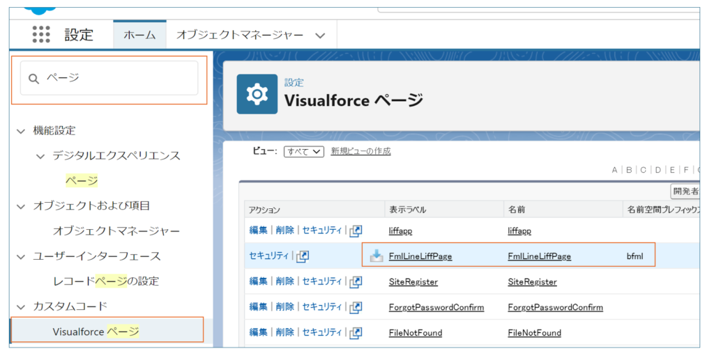 ➁ LIFFのエンドポイント用のSalesforce VFページを作成し公開する