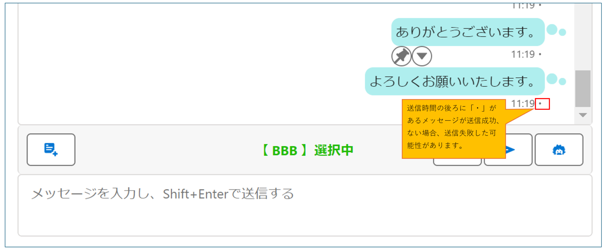 チャットのメッセージ送信が成功したかどうかが心配なことがありますので、確認方法を紹介します。